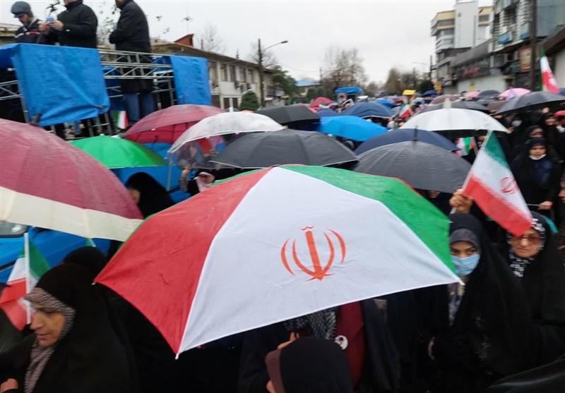 طنین «ایران مقتدر؛ ملت پیروز» در خیابان‌های گیلان با باران الهی