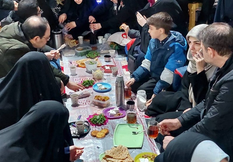 حالشان دست خودشان نبود؛ انگار نیرویی پاهایشان را به اینجا کشانده بود. هرکس چیزی در دست داشت؛ ظرفی ساده از غذا، نان گرم، بستهبندی شامی و فلاسکهای چای در کنار سفرههای هفتسین کوچک که مزین به تصویرِ رهبر شهید و رهبر جدید بودند؛ جمعیت مومن با قلبهایی که در طول یک سال گذشته بارها شکسته و داغهای بزرگی را تاب آورده پا به این میدان گذاشتند.