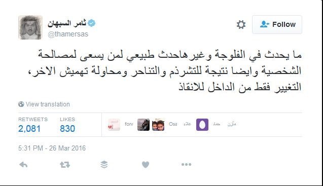 يكشف الحساب الرسمي للسفير السعودي في موقع تويتر للتواصل الاجتماعي الكثير مما قد يحاول اخفائه او لا يقوله علانية أو يدعي غيره.
