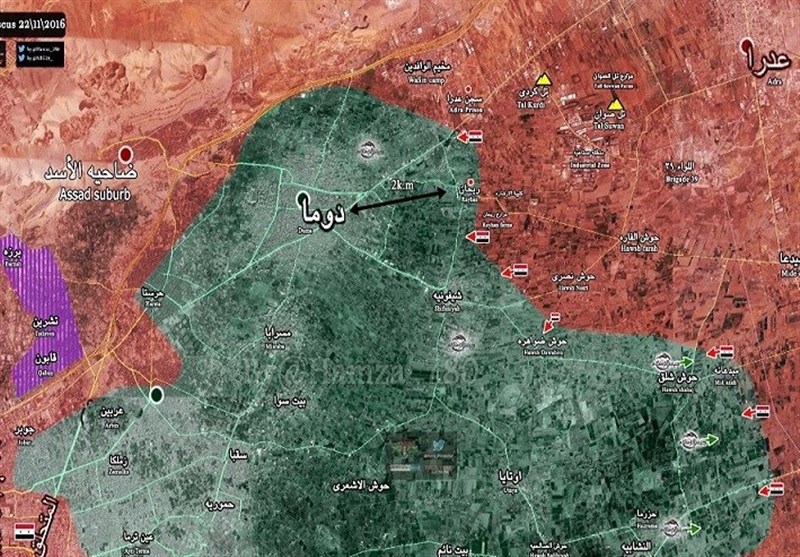 وأفاد مراسل تسنيم نقلا عن مصادر عسكرية أن الجيش السوري مدعوما بمجاهدي المقاومة تمكن من السيطرة على عدد من الأبنية والمساحات الزراعية جنوب بلدة "ميدعا" بريف دمشق.