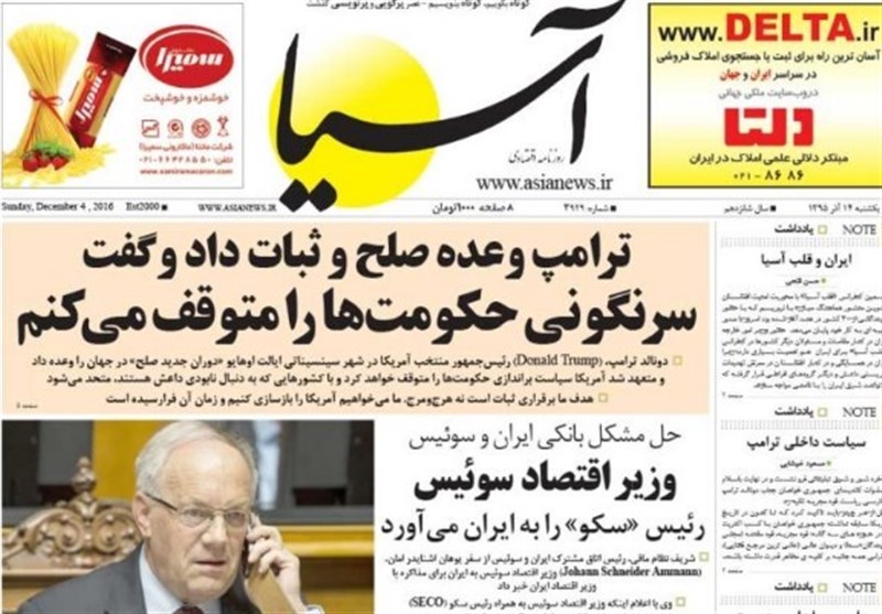 عناوين الصحف الايرانية2016/12/3؛ ايران لن تقف مكتوفة الايدي