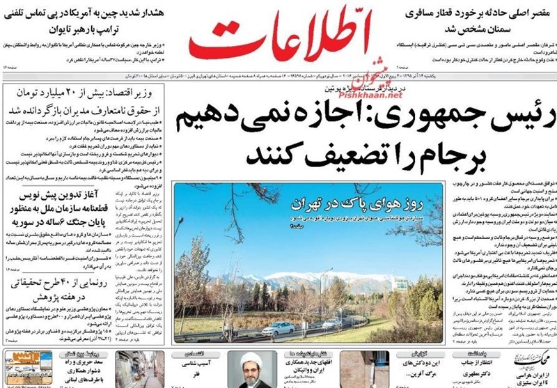 عناوين الصحف الايرانية 2016/12/4؛ لن نسمح بإضعاف الاتفاق النووي