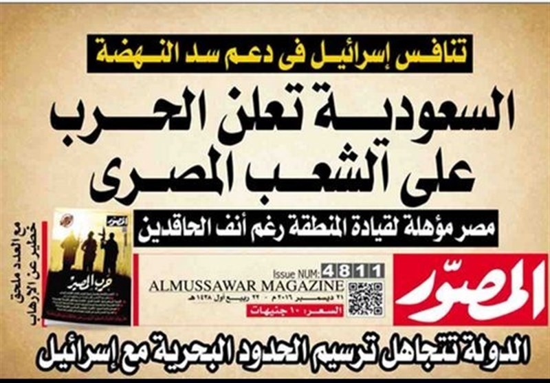 ومن اللافت للنظر بشكل كبير أن مجلة «المصور» القومية التي تصدر عن دار الهلال، دخلت على خط التصعيد الإعلامي بتقرير خبري حمل هجوماً لاذعاً على السعودية؛ إذ تصدرت خلال عددها الأسبوعي ثلاثة عناوين رئيسية «السعودية تعلن الحرب على الشعب المصري»، و”تنافس إسرائيل في دعم سد النهضة»، و”مصر مؤهلة لقيادة المنطقة رغم أنف الحاقدين».