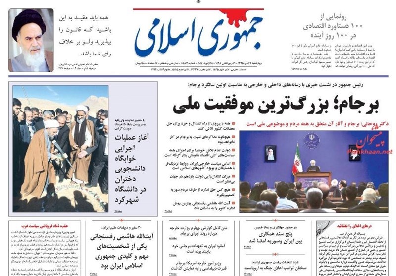روحاني خلال مؤتمر صحفي في طهران الثلاثاء بمناسبة مرور عام على بدء تنفيذ الاتفاق النووي: الاتفاق النووي اعظم النجاحات الوطنية