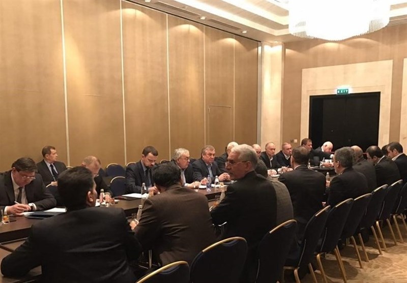 وقد استغرقت المفاوضات 5 ساعات بين الوفود الايرانية والروسية والتركية حيث تبادلت فيها وجهات النظر بشان اخر التنسيقات التنفيذية بشان اجتماع استانة وجدول اعمال الاجتماع والبيان الختامي.
