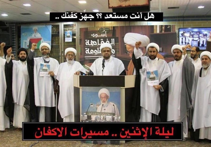 إدراكاً لخطورة المرحلة فإننا ندعو شعبنا الوفي في البحرين للتظاهر السلمي بالأكفان بشكل كبير ليلة الاثنين القادمة، ونؤكد على ماورد في بيان علماء البحرين، فقد جاء الاذن الشرعي على لسان المرجع الحائري والسبحاني، وسيتلوهما الكثير من المراجع في الايام القادمة.