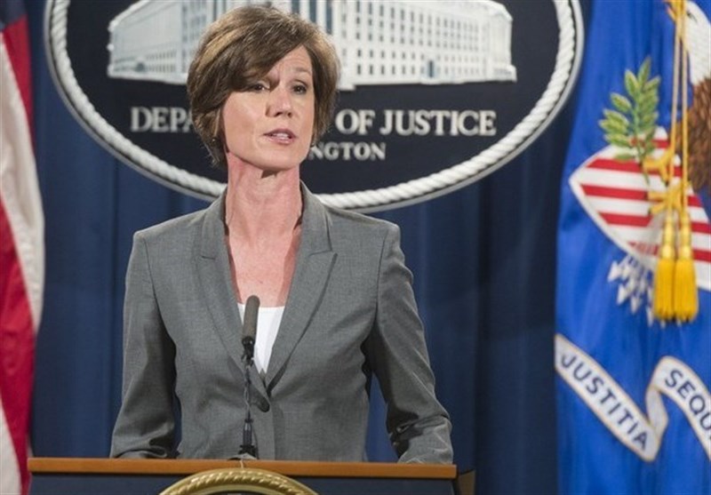 وقد أصدرت، في وقت سابق، تعميما تطلب فيه من المدعين العامين عدم تطبيق قراره المثير للجدل بشأن منع رعايا 7 دول عربية من السفر للولايات المتحدة. وشككت في تعميمها بقانونية وأخلاقية الأمر التنفيذي الذي أصدره ترامب.