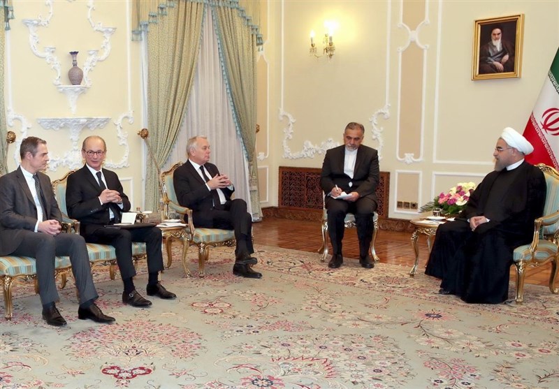 ونقل وزير الخارجية الفرنسي الى روحاني تحيات الرئيس الفرنسي، قائلا، ان ايران وفرنسا رفعتا مستوى تعاونهما في المجالات الاقتصادية والثقافية والجامعية، وهذه القضية واضحة في المحادثات بين مندوبي الشركات الفرنسية مع نظرائهم الايرانيين.
