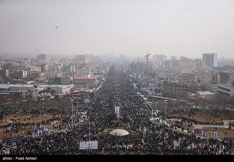 وانطلقت مسيرات الإحتفاء بالذكرى الـ38 لإنتصار الثورة الإسلامية في الساعة الـ9 من صباح اليوم الجمعة، بشكل متزامن في جميع أرجاء البلاد، بنزول الملايين من أبناء الشعب الإيراني إلى الشوارع والميادين العامة، وذلك إحتفاءً بهذه المناسبة المجيدة.