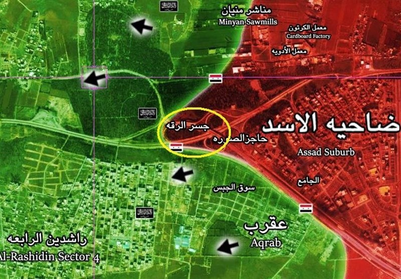 وكان الجيش السوري وحلفاؤه تقدموا أمس من المحور الغربي لضاحية الاسد جنوب غرب حلب باتجاه "جسر الرقة" وسيطروا نارياً عليه إثر اشتباكات مع إرهابيي "جبهة النصرة" أسفرت عن قوع قتلى وجرحى في صفوف المسلحين .