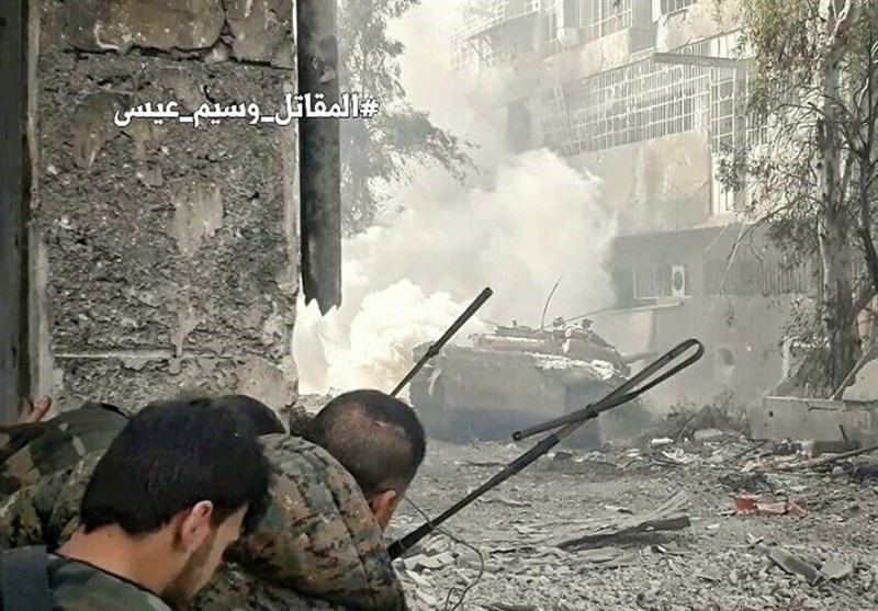 دمشق-تسنيم: تجددت المواجهات العنيفة منذ صباح اليوم الاربعاء بين الجيش السوري والجماعات الإرهابية على محور معامل "الغزل-كراش" في حي جوبر شرق دمشق حيث يسمع سكان العاصمة أصوات انفجارات ضخمة ناتجة عن قصف الجيش السوري لمواقع النصرة على هذا المحور.