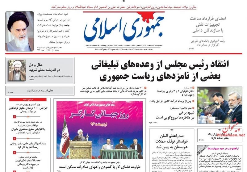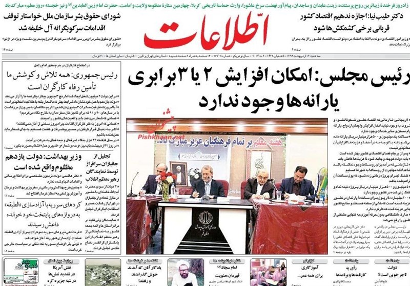 تناولت الصحف الايرانية الصادرة الثلاثاء بطهران، عددا من القضايا المحلية والاقليمية والدولية، من ابرزها تصريحات رئيس مجلس الشورى الاسلامي وتحذيرات دولية لوقف العدوان على اليمن.