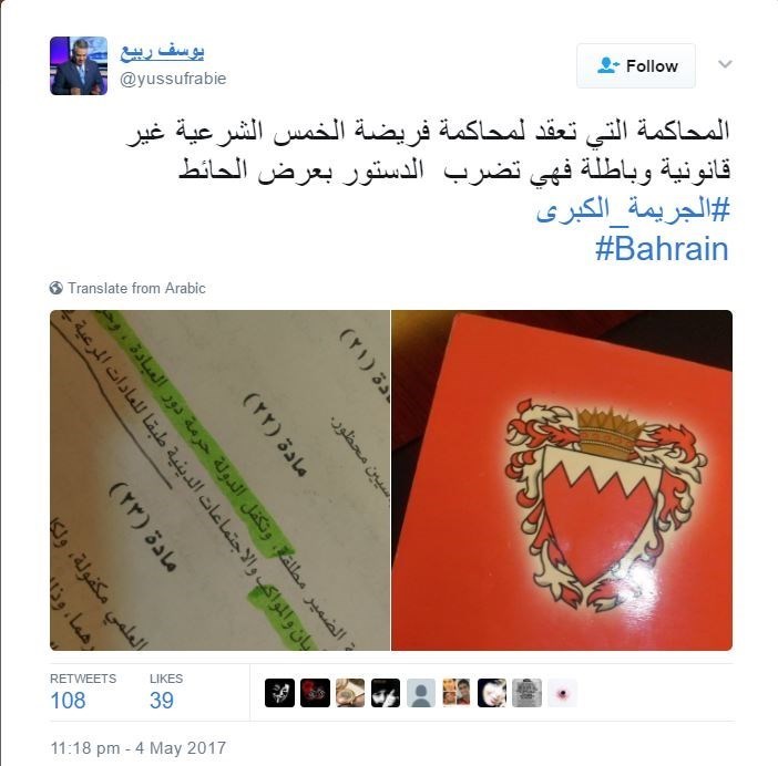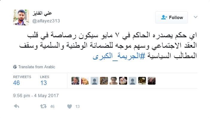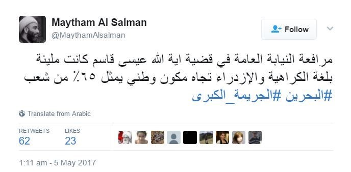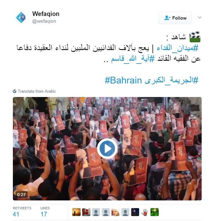أطلق نشطاء البحرين وسم #الجريمة_الكبرى لإدانة المحاكمة السياسية التي يتعرض لها الشيخ عيسى قاسم، معتبرين ان هذه المحاكمة هي بحد ذاتها جريمة كبرى.