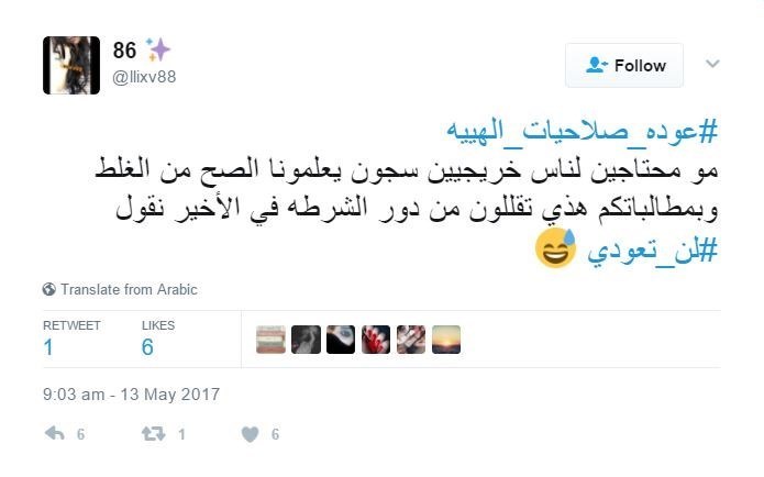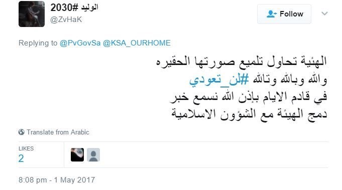 ولم تمنع القيود الجديدة الشعب السعودي من الاعتراض واطلق المغردون وسم "لن_تعودي" في إشارة واضحة لرفضهم عودة هذه الهيئة بعد أن أساءت استغلال صلاحياتها.