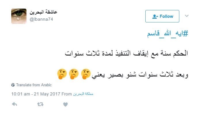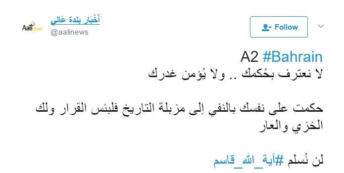 وما أن أعلن عن الحكم حتى انطلقت جموع الشعب الى الشوارع للتعبير عن رفضها للحكم فيما ارتفع نداء الله أكبر في عموم البحرين رفضا للحكم، وشهدت مواقع التواصل الاجتماعي تحركا سريعا للدعوة لرفض الحكم.