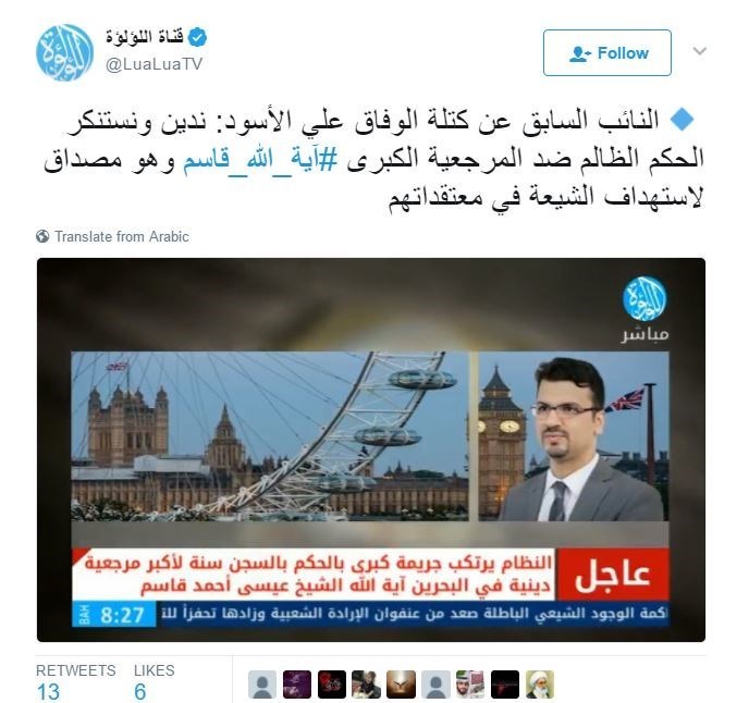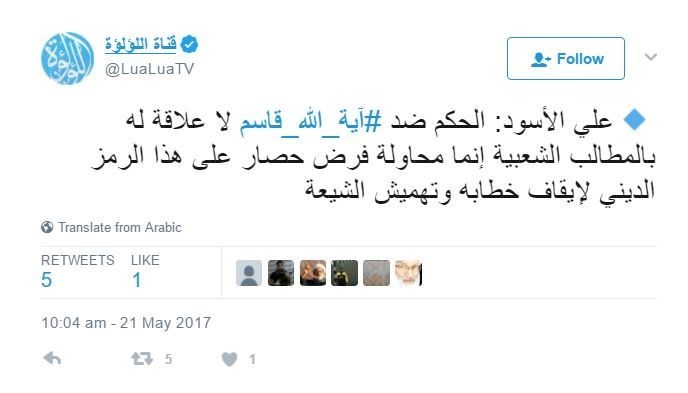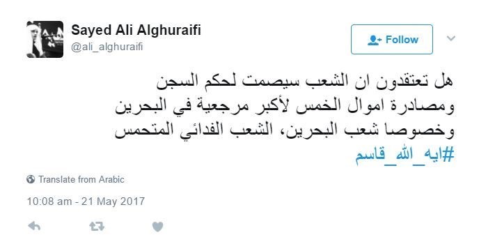 خاص\ تسنيم: أفادت وكالة تسنيم الدولية للأنباء بتصاعد الغضب الشعبي في البحرين بعد اصدار محاكم البحرين حكما بالسجن سنة مع وقف التنفيذ لمدة 3 أعوام ضد الشيخ قاسم ومصادرة أمواله وتغريمه 100 الف دينار.