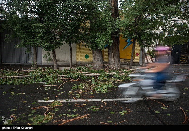 TEHRAN (Tasnim) – A storm with dusty winds and rain rolled through Tehran on Sunday, July 19, knocking down trees and causing power outages.
