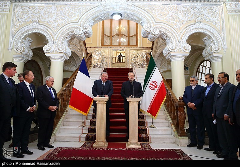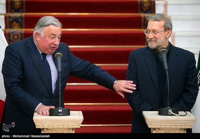 TEHRAN (Tasnim) – Speaker of the Iranian Parliament Ali Larijani and the visiting President of the French Senate Gerard Larcher held a meeting and joint press conference on Saturday here in Tehran.