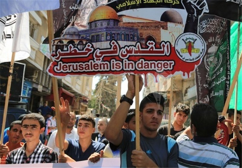 Demonstrators raised flags and chanted slogans in support of Al-Aqsa Mosque and Christian holy sites, with local popular committee member Abdullah Abu Rahmeh condemning Israeli raids in East Jerusalem's Old City.