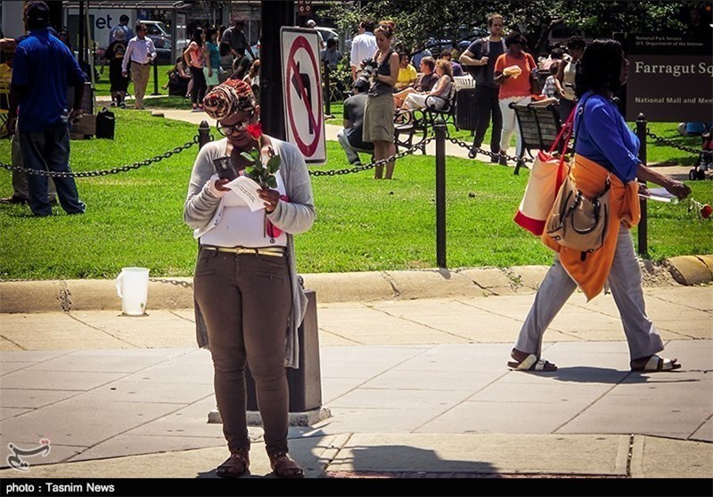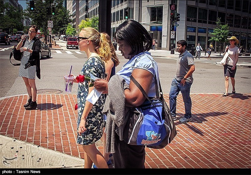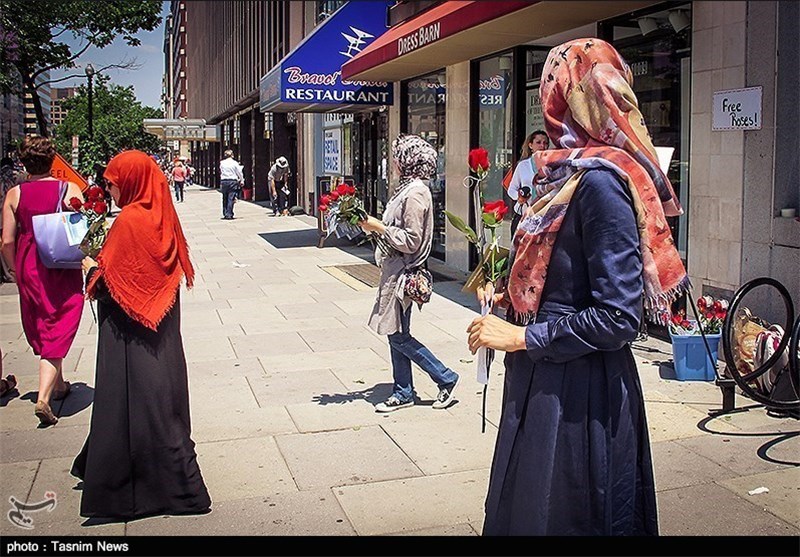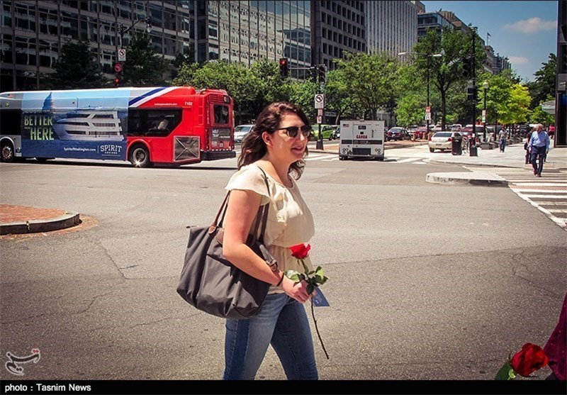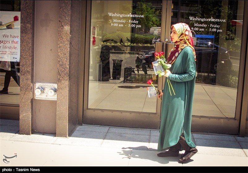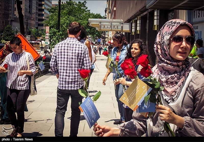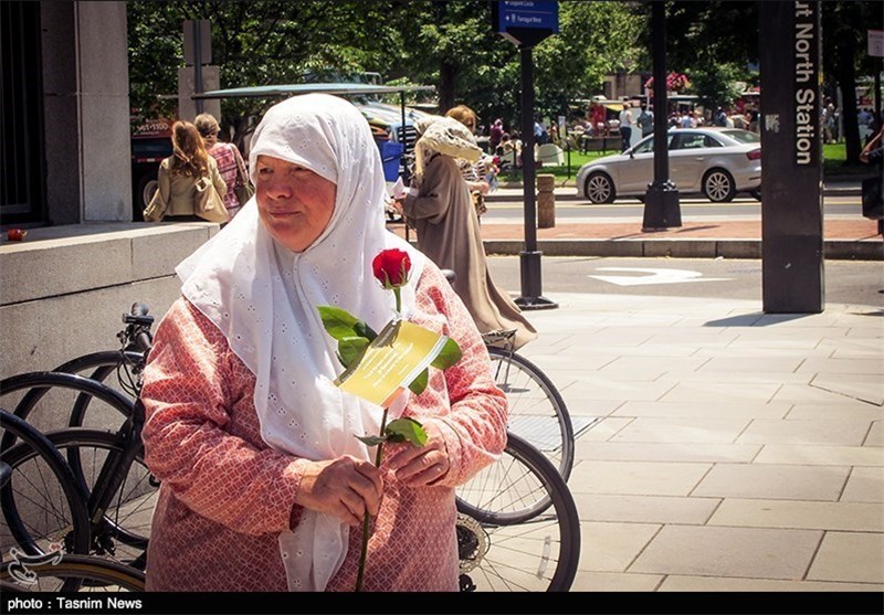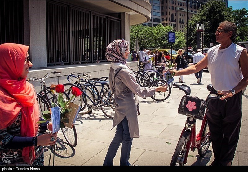 Passersby in front of one of the US capital’s busiest subway stations had the chance to receive a rose from a Muslim lady with a card attached to it, reading a hadith from revered Muslim figures, including the first Shiite imam, Imam Ali (AS), showing Islam’s insistence on equality of people.