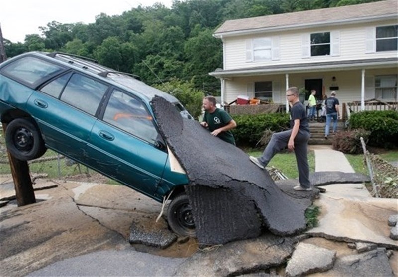 About 500 people were stranded overnight inside a shopping mall in Elkview, near the capital Charleston, after a bridge leading to the main road was washed away.