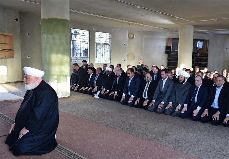 TEHRAN (Tasnim) - Syrian President Bashar al-Assad marked the occasion of Eid al-Adha by attending prayers at a mosque in Darayya, a suburb of capital Damascus, where terrorist groups have recently surrendered.