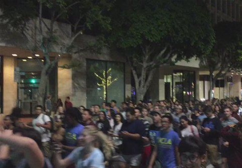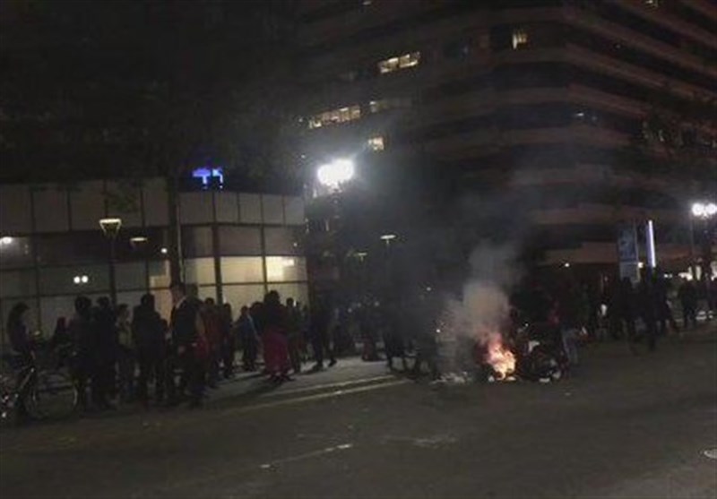 TEHRAN (Tasnim) - A crowd of more than 1,000 people showed up in front of the White House – some protesters even taking to the trees – in the early hours of Wednesday morning with the election still in doubt, but trending towards Trump, the Republican nominee.