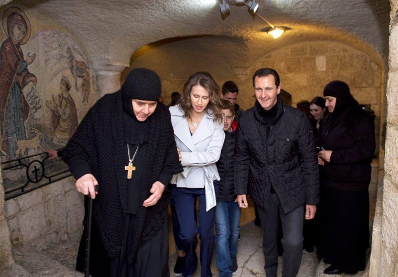 Photographs posted on the Syrian presidency's Facebook page showed the president along with his wife, Asma, standing with nuns and orphans in the Damascus suburb of Sednaya.