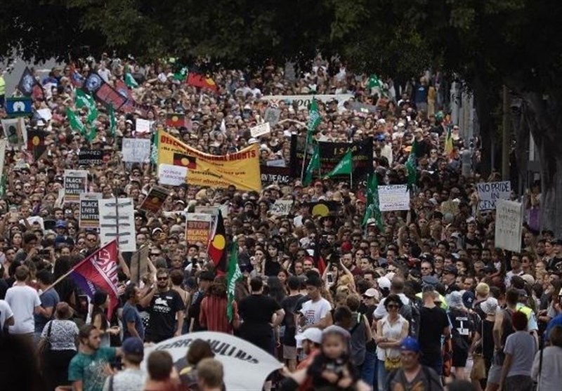 Thousands of people across Australia have joined indigenous people to protest the celebrations.