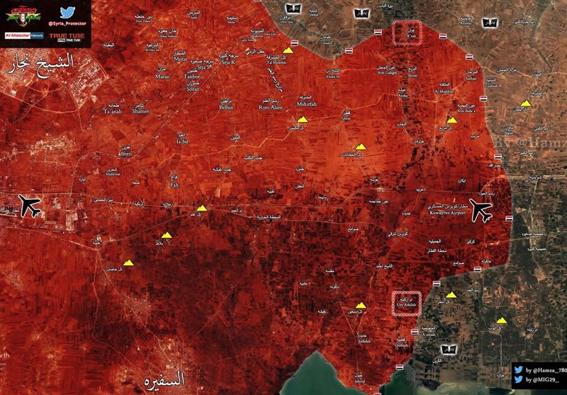 According to Tasnim dispatches, the Syrian army inflicted major losses on the Daesh militants near the airport of Kweyris, near al-Bab, and managed to liberate the nearby Um Arkile town from the clutches of the terrorist group.