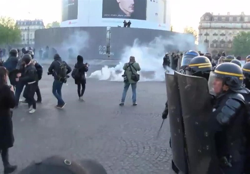 TEHRAN (Tasnim) - Police clashed with anti-fascists protesters in Paris Sunday shortly after early projections from France's presidential elections showed far-right leader Marine Le Pen making it into the second round scheduled for May 7.
