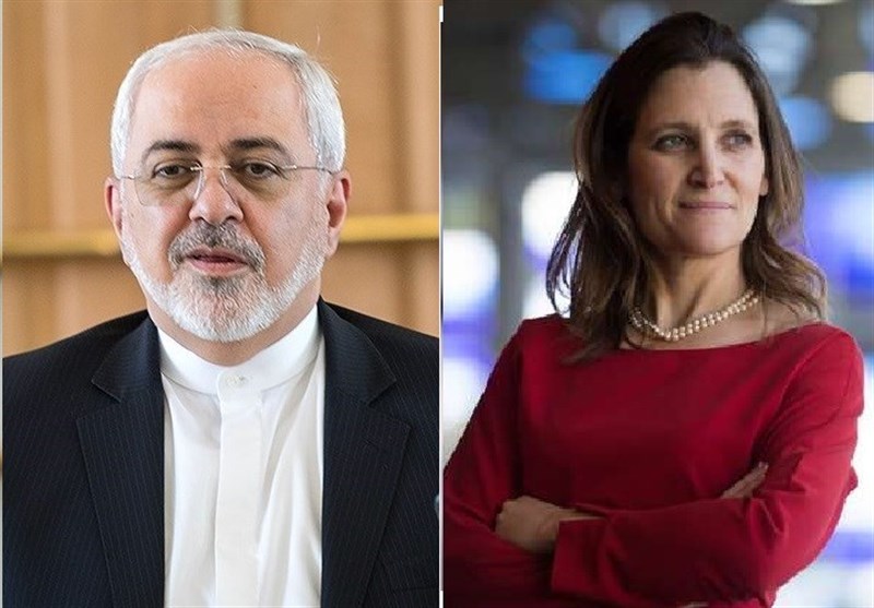 The top Iranian diplomat made the call in a telephone conversation with his Canadian counterpart Chrystia Freeland on Monday night.