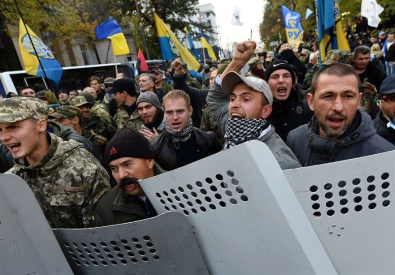 Tuesday's rally in Kiev involved nearly 5,000 people and saw a call by former Georgian leader and current Ukrainian opposition party chief Mikheil Saakashvili for President Petro Poroshenko to quit, AFP reported.