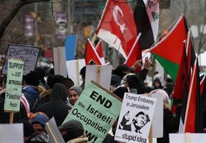 TEHRAN (Tasnim) – Thousands of Canadians took to the streets to condemn US President Donald Trump’s decision to recognize Jerusalem (al-Quds) as the Israeli capital, calling on Ottawa to stand against Washington’s move.
