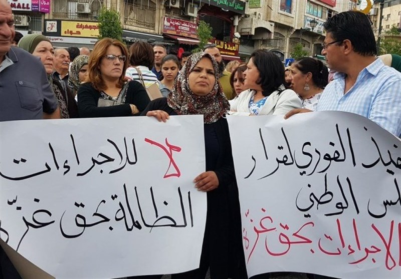 TEHRAN (Tasnim) – Dozens of Palestinians staged a protest rally in the West Bank city of Ramallah to condemn sanctions imposed by the Palestinian Authority (PA) against the Gaza Strip and voice their support for the people living in the enclave.