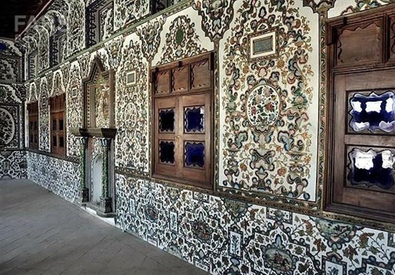 This part of the complex has “London-style” paintings, which was the term used to define the combination of Western and Iranian paintings popular in the Qajar era. Painted scenes from the Layla and Majnun, and Joseph and Zuleika love stories, floral stucco reliefs and Quranic verse calligraphy have been used to adorn Sotoudeh Castel. Andarouni ceilings are covered in walnut wood panels. Doors and windows are made of walnut wood and have Girih patterns.