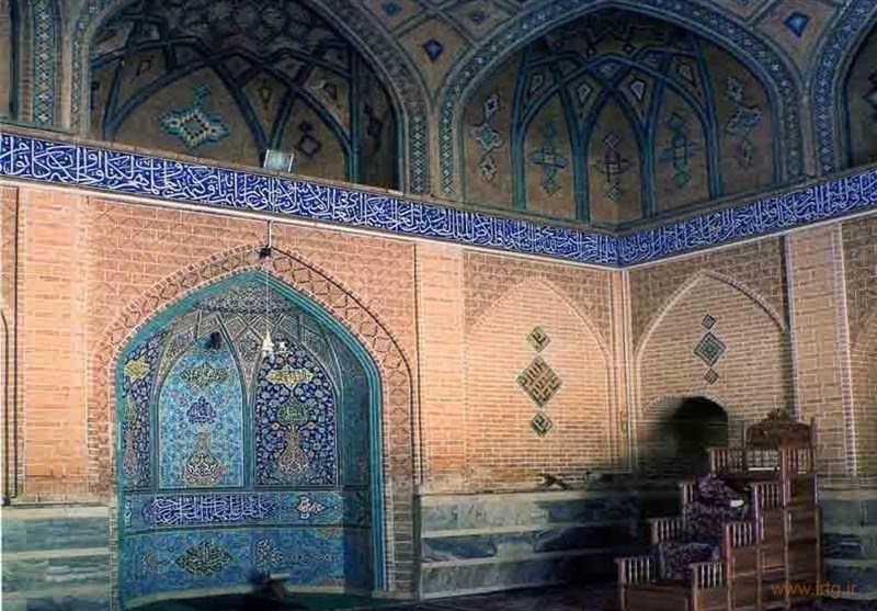 The mosque has a 12-meter entrance iwan and an 18-meter brick dome with a square dome chamber. This single-shell dome is considered the biggest dome in the old texture of Arak. The dome has a simple exterior and an underdome decorated with mo’arraq tiles with geometric motifs and inscriptions.