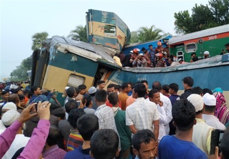 A train heading for the southern port city of Chittagong and one bound for Dhaka collided at around 3 a.m. (2100 GMT) in Brahmanbaria, about 100 km (60 miles) east of the capital, crumpling three compartments of the southbound train.