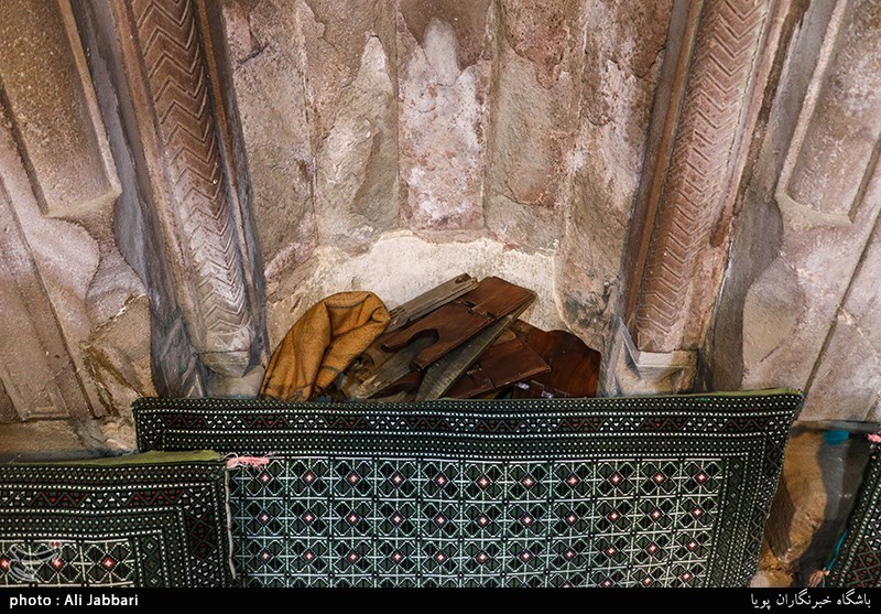This sanctuary (altar) has been carved from a monolithic stone and it has spectacular engravings. Inscriptions and carvings of Tark stone mosque has been embossed by Nasta’liq hands, and its columns have been built by rubicund stones.