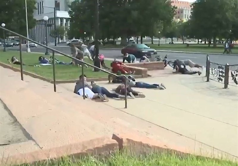 Footage that surfaced on social media shows people being caught off-guard by what was happening, ducking and rushing towards the building shortly afterwards as police officers tell them to run for safety, RT reported.