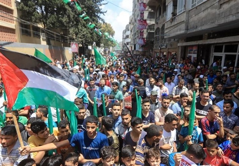 TEHRAN (Tasnim) - Palestinian resistance movement Hamas organized a mass rally in the Gaza Strip against Israel’s plan to annex parts of the occupied West Bank.