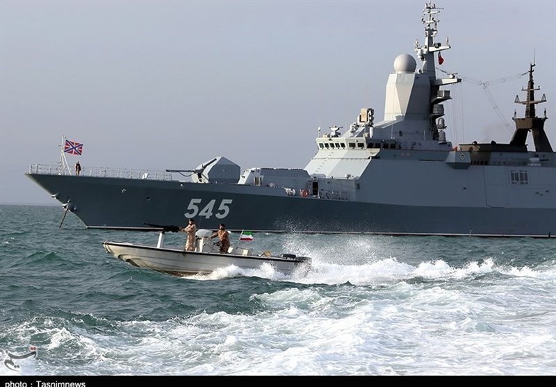 A flotilla of Russian military vessels, including Stoiky frigate and Kola replenishment oiler, arrived in Iran’s southeastern waters on Tuesday to take part in the joint drill.
