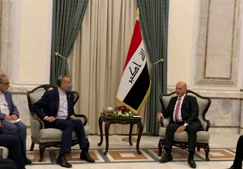 The top Iranian diplomat, who joined the heads of regional states for the Baghdad summit on Saturday, held talks about Tehran-Baghdad relations and the regional developments in separate meetings with Iraqi Prime Minister Mustafa al-Kadhimi, President Barham Salih, and Parliament Speaker Mohammed al-Halbousi.