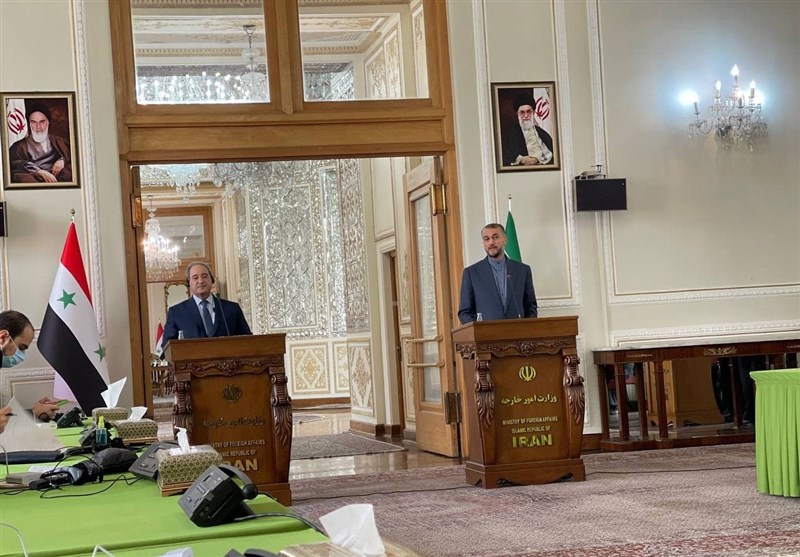 In remarks at a joint press conference with his Syria counterpart Faisal Mekdad, held in Tehran on Monday, Iranian Foreign Minister Hossein Amirabdollahian said the Islamic Republic condemns the presence of foreign forces in Syria without coordination with the Damascus government.
