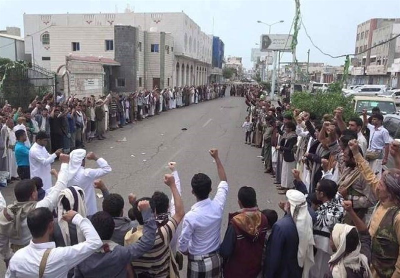 In response to the coalition's crimes, the demonstrators warned that the prolonged blockade will have "dire consequences," encouraging the Yemeni army and its associated fighters from popular committees to escalate their "painful strikes" on targets deep within Saudi Arabia and the United Arab Emirates.