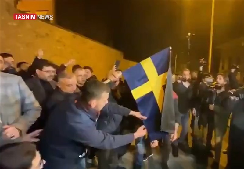 TEHRAN (Tasnim) – Hundreds of protestors gathered in front of the Swedish consulate in Istanbul on Saturday and set fire to the Swedish flag, following a Quran-burning event outside the Turkish embassy in Stockholm.