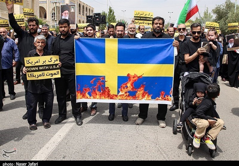 In a communiqué issued after the rallies on Friday, the demonstrators called on the Iranian Foreign Ministry, in tandem with other Muslim countries, to reconsider diplomatic relations with the government in Stockholm.