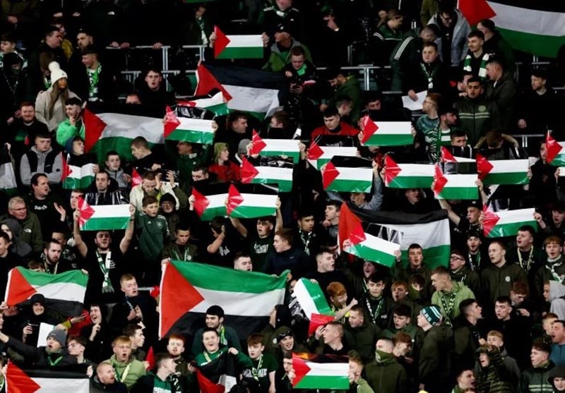 TEHRAN (Tasnim) – Thousands of Scotland's Celtic Football Club fans defied their club's directives and waved thousands of Palestine flags during their team's UEFA Champions League match against Atletico Madrid.