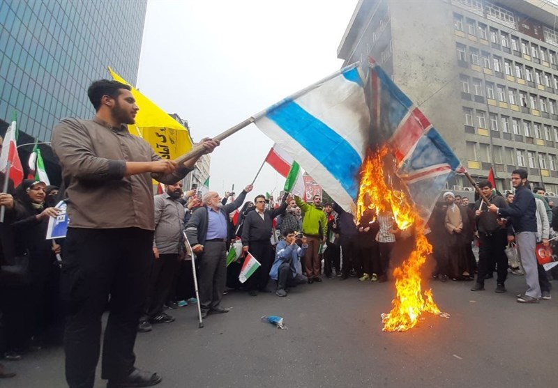 Iranian nationals turned out for this year's 13th of Aban demonstrations to express wholehearted support fot the Palestinian people and resistance movements, as well as to condemn the widespread crimes against Gaza carried out by the Zionist regime of Israel.
