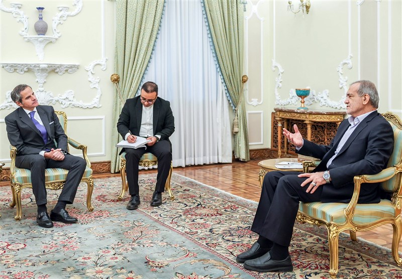 Pezeshkian made the comments at a meeting with Director General of the International Atomic Energy Agency Rafael Grossi in Tehran on Thursday.